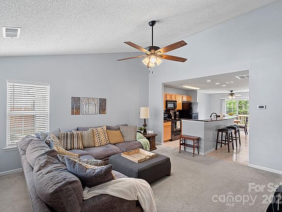 A conveniently located, ranch style home waiting for its next owners to make it their own. 3 Beds & 2 full baths with spare rooms having double door closets for optimal closet space. Primary BR has walk-in closet and tray Ceiling. Kitchen has Black appliances w/ Garbage disposal, Pantry, over sized Kitchen Island with Bar Height seating offering an open concept living & simple flow. Roof replaced in 2024, Hvac replaced about 8-10 years ago. Compared to neighbors this home is one of the few that offers a 2-car garage which has epoxy-coated floors, built-in benches equipped w/ outlets & one 220 volt outlet underneath, built in shelving, additional lighting installed overhead, a window added for natural light & air compressor can stay if desired. Consider this home low maintenance w/ minimal landscaping needs. Located next door to Magla Park which offers a playground, walking trails, rentable shelters & baseball event/practice field, 5 mins to downtown Mooresville for shopping & dining.