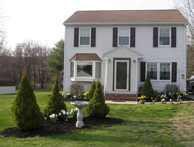 Picturesque, quiet location, 4 bedroom 2 story, situated on 3.08 acres, with stream at back of property. Eat in kitchen, separate dining room. Lower level playroom, office. Double tilt replacement windows, garden with electric fence, full attic-floored. Newer hot water heater, well pump, water softener, acid neutralizer, appliances. Gambrel Shed 8X18.