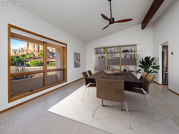 ****STUNNING Sedona Dream Home in the VOC*** This one-of-a-kind renovated ranch style home features 2 spacious bedrooms, 2 bathrooms, and built-in shelving surrounding a beautiful stone fireplace. The great room is perfect for entertaining with multiple areas for gathering and enjoying meals with loved ones. Set up a home office or craft room in the added living space off of the kitchen, enjoy dining outdoors on the covered deck, or spend time gardening in the low maintenance landscaped yard. This home is located on a quiet street with views of Courthouse Butte, Castle & Bell Rock. Take advantage of the close proximity to shopping, dining, and hiking trails or just enjoy the peacefulness of the famous Sedona red rocks from every room of the house.