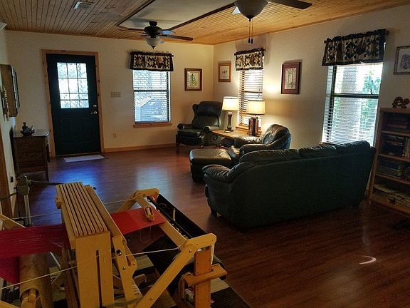 Cozy log sided cabin on tree lined corner lot. Detached workshop has 40 amp electrical service and computer hookups. Large concrete patio great for entertaining and outdoor activities. Move in ready and includes all appliances.