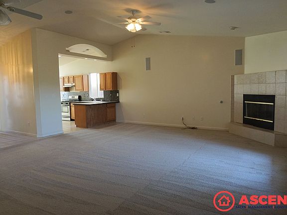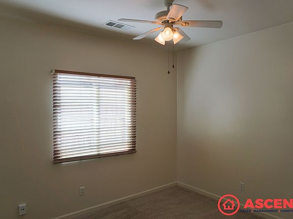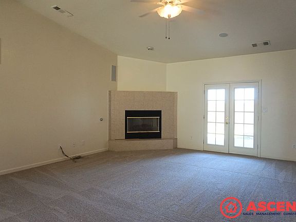 Beautiful 3 bedroom 2 bath house with a separate office. Cul de sac location. Step inside almost 1900 square feet. Extra high vaulted ceilings, freshly painted, and brand new carpet. Open concept. Large family room with corner fireplace. Eat in kitchen with lots of cabinets and separate pantry. Solid granite countertops. Beautiful arched windows. French doors to private fenced backyard with covered patio. Large primary suite with attached office/nursery, walk in closet, and en suite bathroom with soaking tub plus a walk in shower. Double sinks and tiled floors. Two more secondary bedrooms and a spacious second bathroom with tub/shower combo, tiled floors, and a large linen closet. Inside laundry with both gas and electric hookups. Raised panel doors through out, lots of ceiling fans, plus AC. Two-car attached garage with roll up door and built in storage cabinets. Pets are permitted with a $100 dollar rent increase. Conveniently located near many favorite restaurants and schools including Highland Elementary, North High School, and North Meadows Park, apply online at Ascend Bakersfield . com.