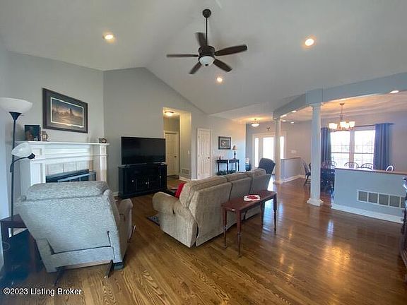Come home to the country! Come home to 105 Sunshine Drive in Bardstown, Ky. Beautiful 4-bedroom 3.5 Bath vinyl ranch with two car attached garage, partially finished basement, 30x40 shop, 24x21 storage building both with electric on on 5.01 beautiful acres with stocked pond only moments from all the amenities that Historic Bardstown has to offer. Wonderful curb appeal greets you as you approach the property with the sprawling wrap around covered porch. Beautiful hardwood entry, desirable open concept floor plan, 9' ceilings, vaulted Living Room offers a gas log fireplace. Tiled Kitchen with custom cabinets & comes equipped with stainless range/oven, refrigerator & dishwasher. Both eat in Dining option as well as formal Dining with decorative tray ceiling allows for oversized gatherings Come home to the country! Come home to 105 Sunshine Drive in Bardstown, Ky. Beautiful 4-bedroom 3.5 Bath vinyl ranch with two car attached garage, partially finished basement, 30x40 shop, 24x21 storage building both with electric on on 5.01 beautiful acres with stocked pond only moments from all the amenities that Powder room & separate laundry room are additional great features. Spacious vaulted Primary suite with tiled bath that features double vanity sink areas, garden tub & walk in shower. Two additional bedrooms & full hall bath are housed on the main level. Venture downstairs to the basement to enjoy the Den area along with the 4th Bedroom & third full Bath. Additional room finished currently used as a bedroom but could be used for a multitude of uses. There is also an additional area for storage. Kick back and relax on the covered porch as you enjoy views of the countryside. The handyman's dream comes true with the 30x40 shop & 24x21 building both offering electric. Take a stroll down to the gazebo where you can do some fishing in the stocked pond.