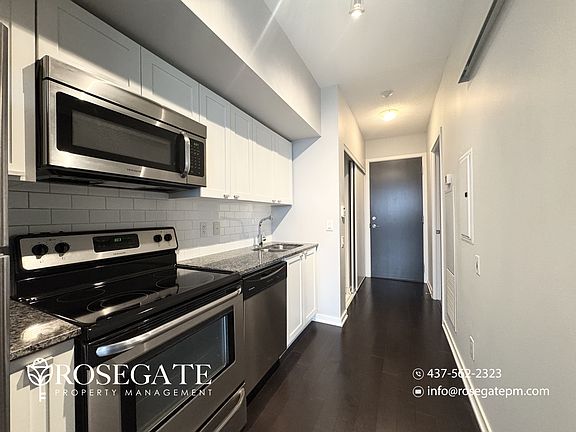 Welcome to 1206-105 The Queensway, a bright and well-maintained 1-bedroom, 1-bathroom condominium offering 475 sq. ft. of efficient and comfortable living space in the heart of Toronto. Perfect for professionals or couples seeking a modern city lifestyle, this condo combines convenience, style, and comfort in a prime location.Step inside to an open-concept living and dining area with natural light streaming in, creating a warm and inviting atmosphere. The kitchen provides functional counter space and cabinetry, while the bedroom offers a cozy retreat. Step outside onto your semi-private balcony for fresh air or enjoy the convenience of a walkout garage and dedicated parking, making city living effortless.Located close to The Queensway, High Park, and Bloor West Village, you'll have access to a wide range of shops, restaurants, transit, and green spaces. Commuting around Toronto is simple with nearby public transit and major routes.Enjoy a low-maintenance urban lifestyle in a well-kept building that balances comfort and convenience. Book your viewing today and see why this Toronto condo is a perfect rental opportunity for modern city living!