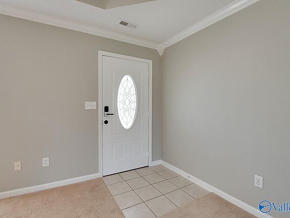 This charming 3-bd, 2-bth home offers a blend of comfort & style on over 1/2 acre. Living room features trey ceiling, crown molding, & a cozy brick fireplace, perfect for relaxing or entertaining. The kitchen boasts lvp flooring, ample cabinet space, eat-up bar, & opens to a naturally lit dining area. Spacious primary bedroom includes a trey ceiling, carpeting, a walk-in closet, & a private ensuite bath. 2 additional bedrooms & second full bath provide extra space. Outside, enjoy the patio overlooking a spacious, fenced-in backyard, perfect to enjoy with family & friends. Conveniently located between downtown Huntsville & the Tennessee line, this home combines tranquility w accessibility.