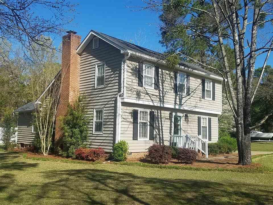Stylish, well kept home located one block from 500 acre Lake Wallace and within view of the local golf course. Many upgrades in recent years. Den addition with cathedral ceiling in 2015, kitchen remodeled in 2016 with new cabinets, countertops, flooring and appliances, heat/ac unit replaced in 2018 and roof replaced in 2012. Extra features include a fireplace, bonus room great for at home office or kids den, patio. Detached storage building. Well landscaped lot. Much more.