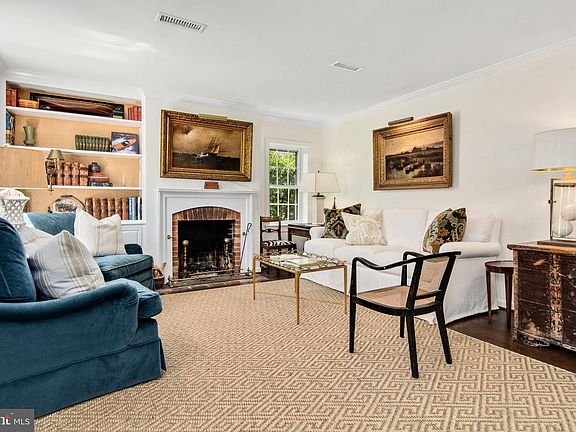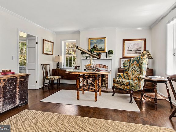 This charming 2 bedroom, 1-1/2 bath home on a secluded, spacious lot is one of the oldest properties in St Michaels. The first floor features a lovely living room with two fireplaces, one with an adjacent built-in bookcase; eat-in kitchen; powder room; and charming seating or dining area that opens to a spacious deck. Upstairs are two bedrooms, a gorgeous tile bath, and cozy nook for reading or relaxation. A small building across the lawn offers space for hobbies. The property also has off-street parking for two cars.