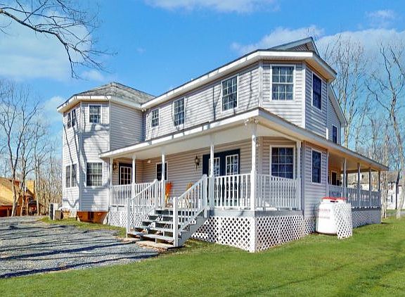 COMPLETELY RENOVATED VICTORIAN FARMHOUSE COLONIAL W WRAPAROUND COUNTRY COVERED FRONT PORCH ON A .7 ACRE CORNER LOT, PERFECT FOR YEAR ROUND VACATION HOME. This immaculate 5 BR, 3 Full Bath home has it all and features recessed spotlighting, hardwood, vinyl, and tile floors throughout, central HVAC, a modern Kitchen with granite countertops and brand new stainless steel appliances that opens to a large Dining area on one end and a spacious Family room w a beautiful stone-faced propane fireplace on the other, a huge Master BR Suite w a Private Ensuite Bath w his and her sinks, a big jacuzzi tub, and walk-in shower, the main bathroom is completely tiled w sliding glass door shower and equipped w a brand new smart mirror, a large 2-Car Garage and an enormous sized finished basement.