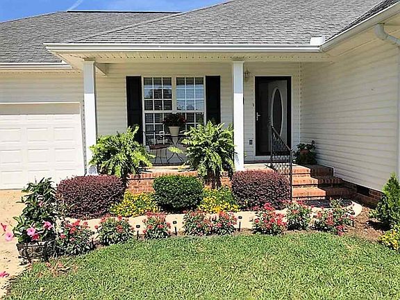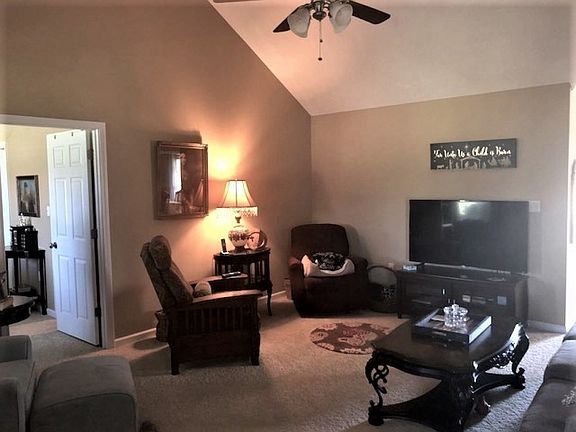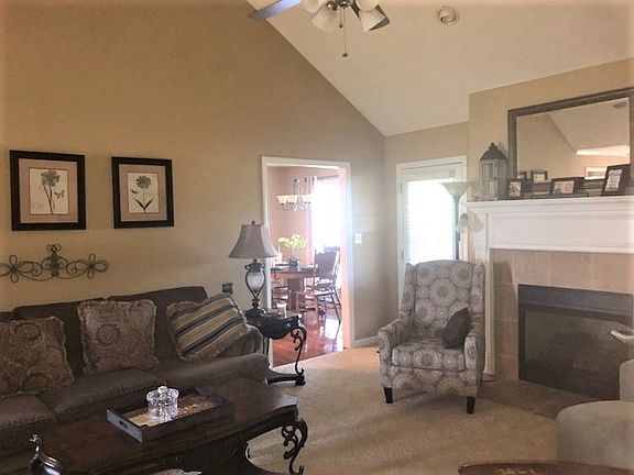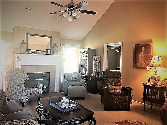 3 BR 2 Bath home that requires little maintenance located on the end of a small quite road. House backs up to fields and River in the distances. Home has high ceilings, separate dining, eat in Kitchen, Large master Suite with jetted tub, double sink, shower, large walk in closet. Living rm has cathedral ceilings, fireplace with gas logs. Two large guest bedrooms with over size closets. Covered patio off the den, covered front porch for you to enjoy. Yard has lovely landscaping! Garage is a two car, with many built in storage shelves. For him there is a workshop off the garage that comes with a roll up door for his riding lawn mower. Perfect house for the couple that needs to downsize.