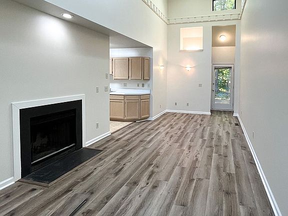 Spacious two-bedroom townhome in the Birnam Wood Neighborhood, boasting an open floor plan, beautiful vaulted ceilings with skylights and large windows. This home has brand new flooring in the living room, hallways and bedrooms, fresh paint, a new stainless steel refrigerator (not pictured), a private back patio leading to a beautiful grassy yard, and 2 parking spaces.