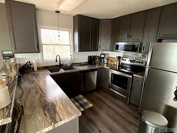 Great Long Range Mountains and Lake Views!! The Gorges State Park and Lake Jocassee can be seen from this unit! Wonderful screened in porch along with an open deck for enjoying the many changing views. Newly remodeled with 9" plank top of the line, maintenance free luxury vinyl throughout the living spaces, Ultra-plush new wall to wall carpet in bedrooms (Did I mention there is a master on both floors?) and upgraded vinyl flooring in both lower level bathroom, reclaimed wood planking above the wood burning fireplace with an open floor plan make this a magnificent mountain family retreat. FURNISHED with exceptions. A new low-water consumption high throne dual flush toilets were installed throughout all bathrooms, with bath fitter custom built shower in master bath and new vanity/faucets. New 2021 52 gallon water heater was installed. The kitchen is a must see with upgraded top of the line Formica La Dolce Vita countertop, new sink, garage disposal and new faucets. There is a community swimming pool that was rebuilt just in time for this summer. A huge deep 2 car garage with storage cabinets is included in the sale price. Cool summers, magnificent fall colors, mild winters and glorious spring time will provide you with a much needed escape! Hiking, fishing, lakes, water fall exploration and nature trips are close by as this community is conveniently located between Cashiers and Brevard. Please schedule your tour today!