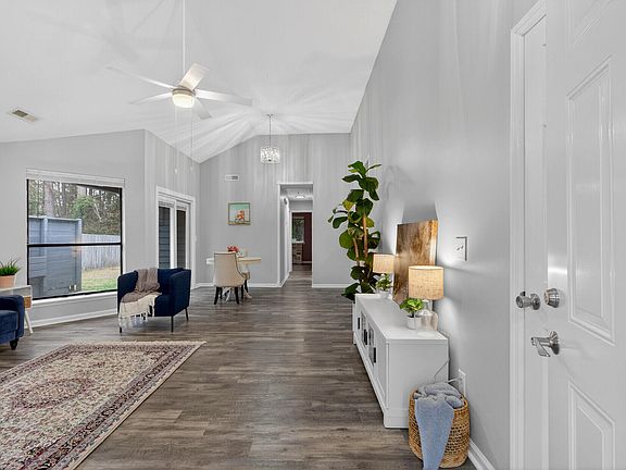 Welcome to this move-in ready 3 bedroom, 2 bathroom ranch home in Summerville SC 29486. Located just minutes from Nexton and everyday shopping and dining, this single-story home offers convenience without the restrictions of an HOA.Inside, vaulted ceilings make the living area feel open and bright. A brand-new wood-burning fireplace and chimney create a cozy focal point for relaxing evenings at home. Most of the interior has been freshly painted, giving the home a clean and updated feel.The spacious bedrooms offer great closet space, and both bathrooms have been updated with new fiberglass shower surrounds and new toilets. The primary bathroom also features a new vanity for a fresh, modern look.Step through the sliding glass door to a private patio overlooking the fully fenced backyard that backs to woods - no rear neighbors and plenty of room to enjoy the outdoors. With a one-car garage, updated bathrooms, new fireplace, fenced yard, and no HOA in Summerville, this home checks all the boxes for buyers looking for comfort, location, and freedom. Located in the desirable 29486 area, this home offers the freedom of no HOA, a convenient location, and a setting that feels both connected and private. It's the kind of home that just feels right the moment you walk in.