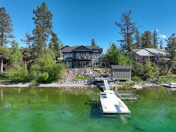 TREASURE STATE LAKE LIVING AT IT'S FINEST! This unique and stunning property sits on the serene, private island of Foys Lake. This Jeff Moser Construction, Inc main home offers incredible lake views, custom cabinetry, walk-in stone showers, circle-sawn fir flooring, granite counter tops, surround sound inside and out, basement radiant floor heating, two covered patios, kid's bunk room, stone fireplace with engraved timber mantel, and plenty of room to entertain guests. Outside is surrounded by extensive landscaping, stone stairways, lakefront deck and storage shed, and a swimming dock ready for summer activities! There are no covenants so the guest home above garage was used as a short-term rental during summer months. Call April Moser at 406-885-2313 or your Real Estate Professional for more information. Listing Agent is related to Seller.