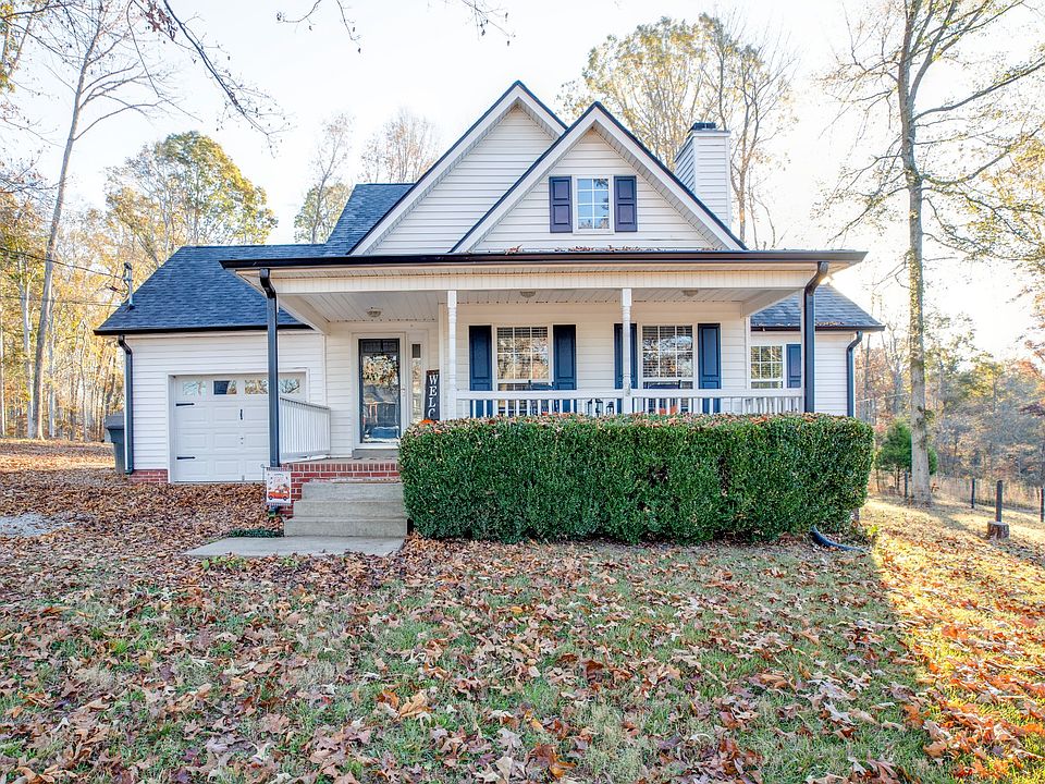 Just in time for the holidays.. enjoy this charming home, minutes from all your needs. Rocking chair front porch.. Vaulted ceilings in the spacious the living room, primary bedroom and bath on the main level. Beautiful fireplace to make the home even more cozy. Nice deck to entertain. Large lot with fire pit in the backyard. Partial fenced in yard.
