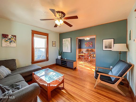 Hollidaysburg Schools - 3 beds, 2 baths, plus so much more. Bonus room on the first floor with en-suite bathroom and backyard access could be used as an office, bedroom, or living space. Spacious third floor could be a great bedroom, library, creative space, or hang-out space. This house boasts 1585 square feet with forced air heating and Central A/C. Two-car detached garage. Large backyard with dark, rich, fertile soil for gardening and the most breathtaking Willow tree - a backyard just begging for pets and people to spend their afternoons out there. Stainless appliances in the kitchen with an abundance of cabinet storage. Beautiful, bright natural light throughout the house. Original wood floors!