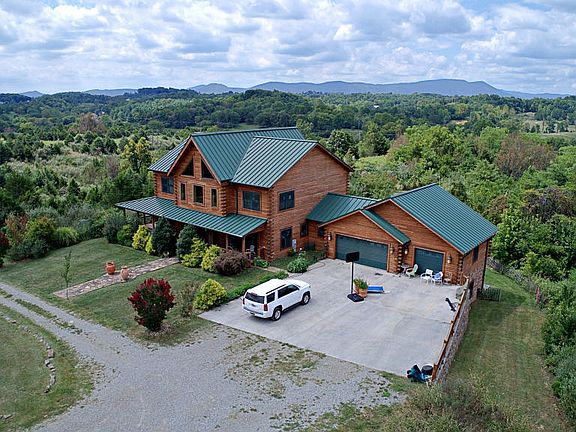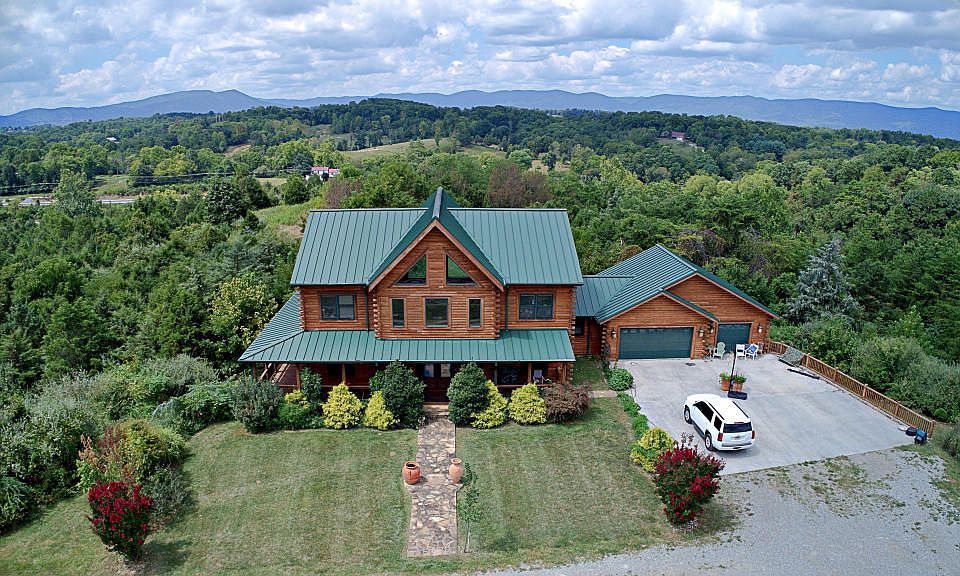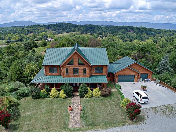 CUSTOM LOG HOME WITH INDOOR POOL UNDER THE 3 CAR GARAGE, 360 DEGREE VIEWS - HOME IS SITUATED APPROX. MIDDLE OF THE 83 ACRES. LOT OF RT220 ROAD FRONTAGE FOR POSSIBLE COMMERCIAL DEVELOPMENT. LARGE OLDER BARN WITH SEVERAL OTHER OUT BUILDINGS, STREAM AND POND