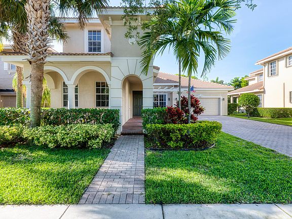 This stunning home found in the desirable Jupiter neighborhood of Paseos offers an amazing 4BR/4BA floor plan. You will find 12- foot ceilings along with updated tile throughout the living room, family room, dining room & kitchen. The kitchen provides granite countertops, breakfast bar, stainless steel appliances and extra counterspace. Enjoy the covered patio overlooking the pool and private backyard with access to a full cabana bathroom. The oversized master bedroom located on the first floor offers an updated master bath with his and her closets. Additionally, you will enjoy plenty of storage hidden under the stairway. This home is situated directly in front of a well-maintained green space, walking path and steps to the community pool, tennis court, playground and clubhouse.