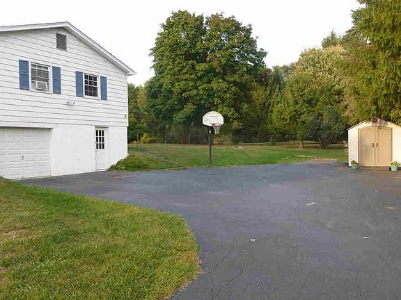 Super commuter location at the end of the cul de sac. Minutes to TSP, I84, schools, shopping, house of worship. Nice size country kitchen. Dining Rm w/cathedral ceiling. New carpet in LR,2 BR. Newer vinyl windows, 30 year arch roof w/ice shield, cast iron boiler, garage door, well troll, well tank, outside doors. Large deck over looking private yard. Backs up to woods for privacy. Partially enclosed yard with fencing. Living Rm w/FP w/wood insert(will heat the whole house).