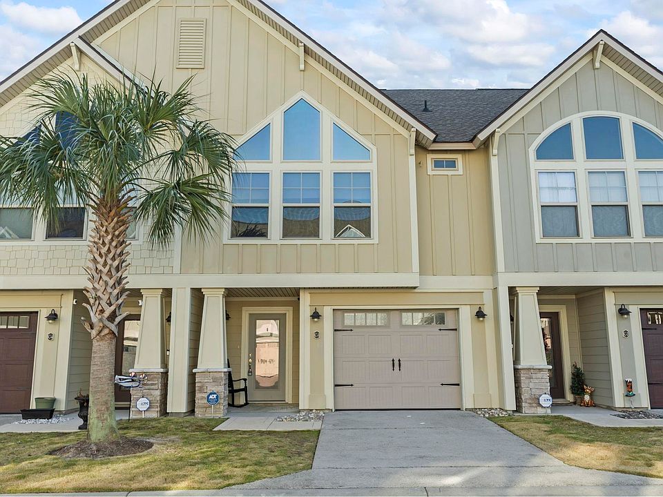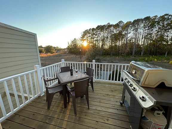Wake up and enjoy your coffee on your peaceful shaded deck off kitchen and relax to the gorgeous sunsets at Happy Hour on the western facing upstairs deck and downstairs patio off guest bedrooms in this upscale Cape Cod-style townhome bathed in natural light in modern Carolina Forest of Myrtle Beach. Unit C-3, located in the newest building (2018) at 105 Villa Mar Drive features Hardi-Plank siding with stacked stone accents, carriage-style garage doors, and a covered entrance. Highlights include dual-zone A/C, LVP flooring throughout including an upgrade in the master bedroom & closet AND bedroom downstairs, Travertine tile in bathrooms with granite countertops, a built-in coat rack & shoe storage Bench in Entry hall, a wood staircase, and raised panel doors with satin nickel finish hardware. Furniture is negotiable. Both the window hardware and treatments convey. Upstairs opens to a beautiful bright & open modern floorplan with vaulted smooth finish ceilings, recessed lighting and ceiling fans. The kitchen boasts stainless steel appliances, brand new refrigerator, granite countertops, Timberlake Shaker-style cabinetry with double lazy Susan spice cabinet and pantry closet. The master suite features double doors, LVP upgrade, cathedral windows with privacy film, and pocket doors to the bath and walk-in closet. Enjoy outdoor living with 3 sets of sliding glass doors that lead to the back patio and an upper deck western exposure, perfect for entertaining, grilling, and sunset views. The community offers BBQ areas, multiple additional parking spaces nearby the unit and ample street parking behind unit as well, along with low HOA fees. Quiet area but still only minutes to nearby new shopping areas & great dining, McLeod Hospital & medical offices, the YMCA, golf, and beaches & Intracoastal with easy access to highways 31 and 17 right off International - this child and pet-friendly neighborhood is ideal for a primary residence or vacation home. Call the listing agent today for a showing and look at your new spotless home at the beach! ***ONLY 3 miles (or 8 minutes) to Claire Chappin Wellness Center YMCA with indoor pool!!