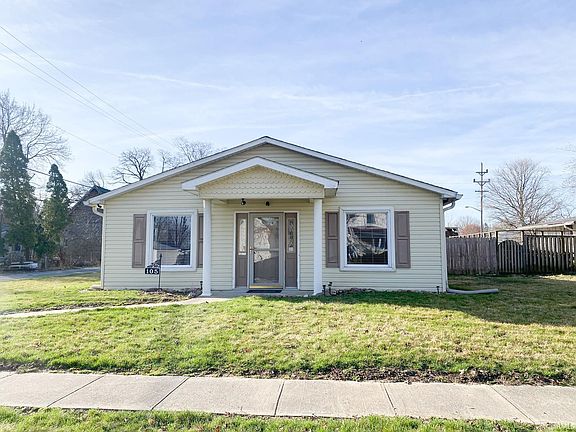 Fun in the sun and outdoors are a big part of this ranch home's story. Featuring a privacy fenced yard with above ground pool, large deck, 3 car detached garage all right next to a park. This home has new vinyl flooring througout the living and bedroom spaces, tile flooring in the kitchen and bathrooms for easy cleaning and maintenance. The open floor plan features large kitchen and dining area with stainless steel range and refrigerator and great room with picture windows. The primary suite has two closets and a private bath. The two additional bedrooms are spacious with large closets and share a full bath located in the hallway. The laundry has tons of space for all your needs and there an oversized hall closet for storage. This slab has a secret weapon in that all the water lines have been run above the foundation for easy access!