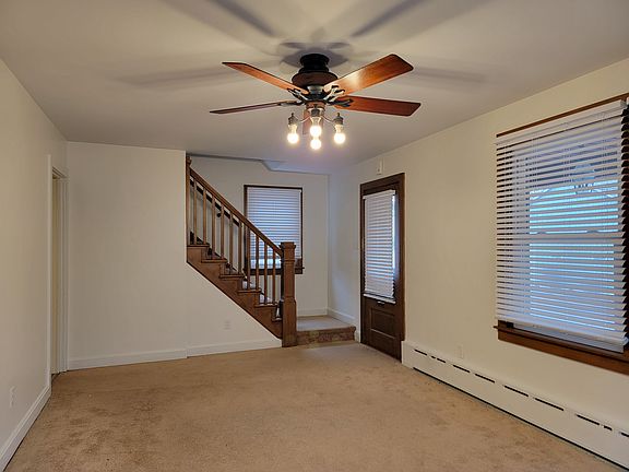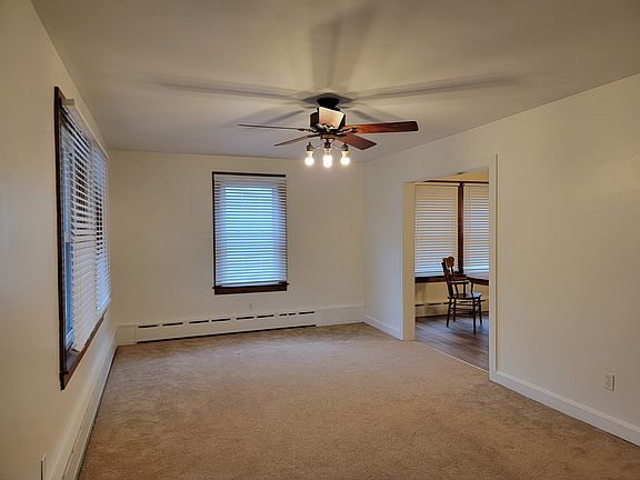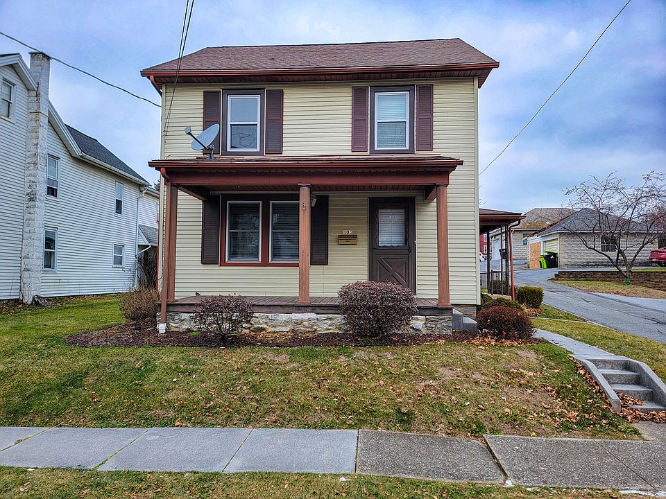 This charming home is in a great location in the heart of Myerstown, close to major roads for commuting and within easy access to shopping and local businesses. You'll enter into a comfortably-sized living room, through a doorway to the formal dining room, and on into a bright kitchen. A half bathroom off the kitchen doubles as a laundry room. The second floor offers the family bathroom, a hallway linen closet, and three bedrooms one with wooden built-ins for convenient storage. There is also an unfinished basement. Outside, enjoy warm weather days on the front covered porch, back patio, or in the grassy yard. With wood trim throughout, ceiling fans for your comfort, vintage hardware mixed with modern touches (updated flooring, appliances, etc.), this home is a must see for anyone looking for a unique place to call home! 1 pet up to 35lbs (at maturity) permitted with additional fees One year contract, renews month-to-month after the first year.