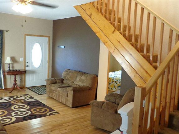 Remodeled 4 bedroom home in Smithton with many upgrades. This 1 1/2 story bungalow was completely remodeled in 2009 with new sheet rock, new wiring, 200 Amp breaker box, tilt in thermal pane windows, hardwood flooring, tiled kitchen, bathrooms, laundry room floors, kitchen cabinets, counter tops, central air conditioning, heat pump, light fixtures and ceiling fans. New architectural shingled roof and gutters in 2015. New hot water heater in 2014. Main floor has 9 foot ceilings through out. Kitchen comes with all the appliances. Laundry room comes with washer, dryer and deep freeze. 2 bathrooms and large living room. Full basement with new sump pump. Covered front porch, large deck, fenced back yard, storage shed. Move in ready, comfortable, energy efficient, all electric home.