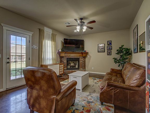 Beautiful One Level Full Brick Home, Features 3 Bedrooms, 2 Full Bathrooms, 2 Car Garage, Fully Fenced Yard (Privacy & Chain Link Post), Gutters, Sidewalks, Covered Patio & Porch, Extended Floored Attic, Tilt Vinyl Windows, Programmable Thermostat, 9 Ft Ceilings, Knotty Alder Cabinets, Gas Stove, Formal Dining, Gas Fireplace, Laundry Room Flows through to Primary Walk-in Closet, Concrete Stained Floors, AT & T Fiber Available, Built in 2017. Qualifies for Rural Development 100% Financing.
