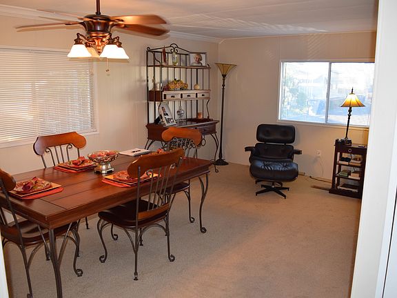 All age park. This gorgeous home has two bedrooms and two full baths ~1200sqft. Inside laundry. Lovely family room opens to the kitchen with a breakfast bar. Very large combination living and dining room with additional sitting area off of kitchen. A/C-heater plus evaporative cooler. Maytag appliances (gas stove/oven and dishwasher) in kitchen and Whirlpool refrigerator with built in water filtration and ice is included in sale. Newer paint inside and out. Shaded screen covers on all windows assists in cutting heating and cooling costs. Low maintenance backyard with storage shed for additional storage. 2 car parking. 1978 Model makes it easy to finance with only 5% down needed. Close to Riverpark shopping center and Freeway 41. Only buyers with proof of mobile home pre-approval and/or cash buyers will be allowed to view home. 559-325-4345