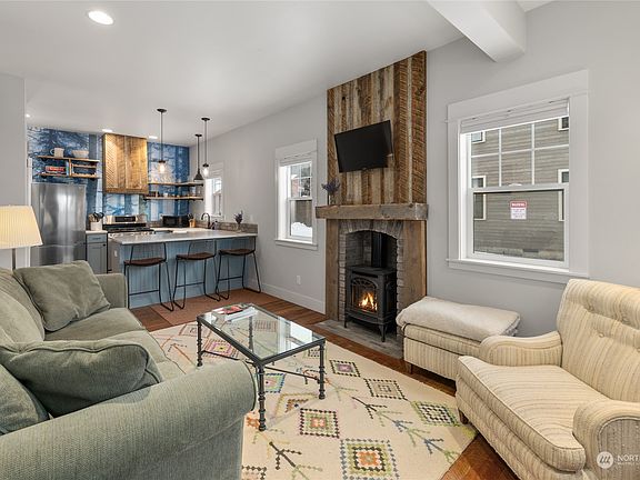 BUILT in 2018 with that old Roslyn charm! Adorable & stylish with classic details, this little gem in the heart of Roslyn, shows like new and invites you to walk to all Roslyn has to offer. Designer finishes & surfaces throughout with practical and thoughtful use of space in this cozy bungalow. Kitchen includes slab granite, porcelain sink, 5 burner propane stove with range hood wrapped in barn wood. Reclaimed barn wood mantle above the propane fireplace. Matching custom-made antique sink vanity in both baths. Custom lighting from circa 1900. Soft wood floors with circular saw blade marks helps highlight the vibe throughout. This home could be your cozy weekend sanctuary or the perfect full-time residence. Short term rental yes!