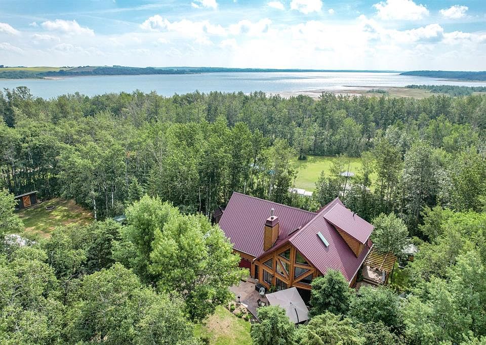 Welcome to your private lakefront retreat in beautiful Ponoka County. Nestled on a treed lot, this meticulously cared-for log-style home blends rustic charm with modern comforts, offering the perfect balance of relaxation and everyday living. Step inside to discover a bright and inviting living room with soaring ceilings and a striking stone fireplace that creates a warm and welcoming focal point. The spacious kitchen features rich dark wood cabinetry, a functional island, and plenty of counter and cupboard space, making it ideal for both family meals and entertaining. A dedicated laundry room with extra storage adds convenience to the main floor. A graceful spiral staircase leads upstairs, where you’ll find three comfortable bedrooms and a well-appointed 3-piece bathroom. The primary suite boasts a generous walk-in closet, while the additional bedrooms provide ample space for family or guests. Outside, the natural beauty of this property shines. Lush trees, vibrant flowers, and thoughtful landscaping create a serene setting, while the back deck offers the perfect spot to unwind and take in the peaceful lake views. A gated entrance enhances privacy, and the attached double garage adds both function and security. Please note that this property comes the John Deere tractor + snow blower attachment, two lawnmowers, the patio furniture and all the televisions and shaw/rogers satellite! With its rustic elegance, stunning surroundings, and tranquil lakeside setting, this property offers an extraordinary opportunity to own your very own lake getaway in Ponoka County.
