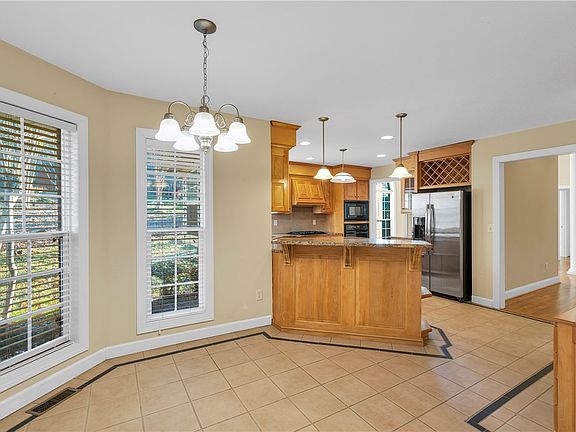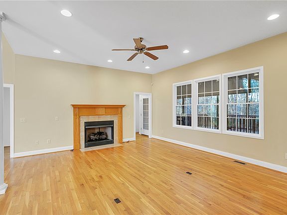 Welcome to this beautiful cul-de-sac home located in the highly sought-after Kings Grant subdivision! This lovely property features 4 bedrooms and 2.5 bathrooms, making it the perfect home for families or those who love to entertain guests. As you enter the home, you'll be greeted by soaring ceilings. The spacious living room features a fireplace and expansive views of the private, illustrious backyard. . The kitchen is a chef's dream with granite countertops, gas cooktop, and built in ovens. The dining area adjacent to the kitchen is perfect for family meals or dinner parties with friends. The primary bedroom is located on the main floor and features a double-sided fireplace, that adjoins the bath, as well as access to the screened-in porch. The additional bedrooms are located on the opposite side of the home and all have high ceilings and lots of light. Additionally, there is a large bonus room, off the kitchen, perfect for a playroom, media room, or home office. The home is situated on a peaceful 1.55 acre wooded backyard perfect for a fire and nature walks. You will likely see deer while relaxing on the screened porch or large deck. Don't miss your chance to make this wonderful house your home! Contact us today to schedule a showing.