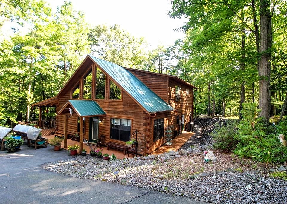 Log home perfection. Wonderful chalet log home with big open spaces, light and bright. Huge great room with wood ceilings and floors, stone fireplace, large open kitchen with gleaming granite counter tops and ample cabinets, plenty of dining space - great floor plan with two bedrooms and full bath down, private master suite with balcony, full bath and bonus loft upstairs, two car garage, paved roads all the way to the front door, garden space, flag stone patio with pool and fire pit and a awesome covered porch with ultimate peace and quiet.