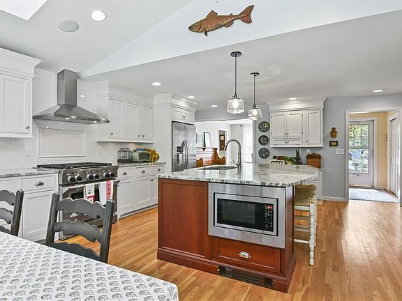 Gracious, classic Colonial home situated on a quiet street in the desirable Signal Ridge neighborhood. Beautifully landscaped 1 acre lot with a private wooded backyard and inground pool. Updated interior includes over 3,700 sq ft of finished living space; 4 bedrooms, 2.5 bathrooms, hardwoods throughout, gorgeous, fully renovated spacious eat-in Kitchen with stainless steel appliances, gas range, great pantry and storage, vaulted ceilings and large windows that overlook the back deck for entertaining. Recently renovated primary suite bathroom offers a soaking tub and tiled shower with skylight, giving a spa-like feel. Other features include built-in bookcases, 2 wood burning fireplaces, first floor laundry room, 3 car garage, first floor office space(s). Location offers easy access to I-95 highway, 15 minutes to TF Green International Airport, just over an hour to Boston, close to downtown East Greenwich restaurants, shopping, coffee shops, marina, and Goddard State Park with golf, beach, horseback trails, boat ramp, walking paths and picnic areas. Move-in ready, this house is a must see!