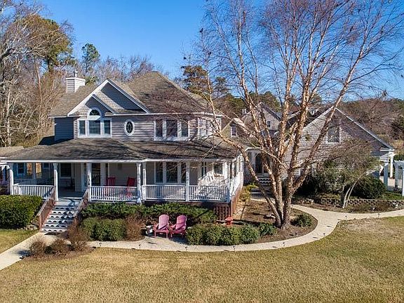 Charming home nestled in Point Harbor with amazing sound views sure to impress with its wrap around porches and attention to detail. As soon as you enter the front door you will enjoy soaring ceilings letting in plenty of light in your main living area with a beautiful open staircase to the upstairs with two spacious bedrooms with shared bath. Formal dining perfectly nestled between kitchen and living areas. Large kitchen with breakfast nook, plenty of storage, and updated appliances, counters and floors. The downstairs master is a true delight with an over sized sitting area, two walk in closets, and large master bath with soaking tub and walk in shower. Also enjoy additional bedroom with private bath on main living level. If you choose to enter the home through the spacious garage you will be welcomed by a convenient mud room with laundry and extra storage. As if the inside were not enough; relish in your large lot overlooking the sound with matching storage shed for all of your toys! This is a must see for anyone looking for spacious living in the serenity of the Point Harbor community.