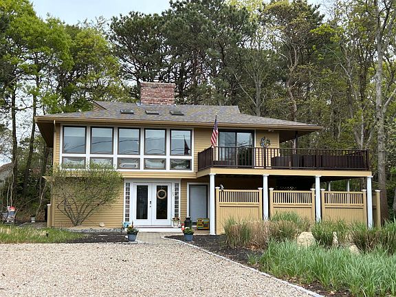 If you have been looking for a wonderful beach house in beautiful Bright Coves... look no further! This 3 bed/2 bath home is ideally located just across the street from the community reserve area, making it simple to launch your kayak and paddle out to the Popponesset Spit for a day at the beach! If you prefer to walk or bike, you are also a short distance away. Upon returning home, enjoy the outdoor shower, and spend the evening entertaining friends and family on the extensive deck off the main living area. The renovated kitchen includes folding windows to allow easy pass through access for food and drinks and sharing conversations while preparing dinner! Two bedrooms and a full bath on the main living area as well as a sizable 3rd bedroom with private patio access and renovated full bath on the entry level provides great space for all! Looking for additional outdoor space ? Make use of the side patio area with a good book and favorite beverage! Some views of the waterway across the street can be captured from the living area and the deck. Come make this special property your enchanting Summer Escape! PROFESSIONAL PICS AVAILABLE SAT. 6/1