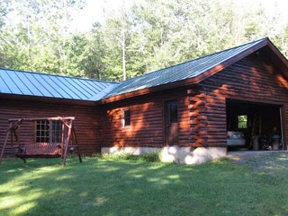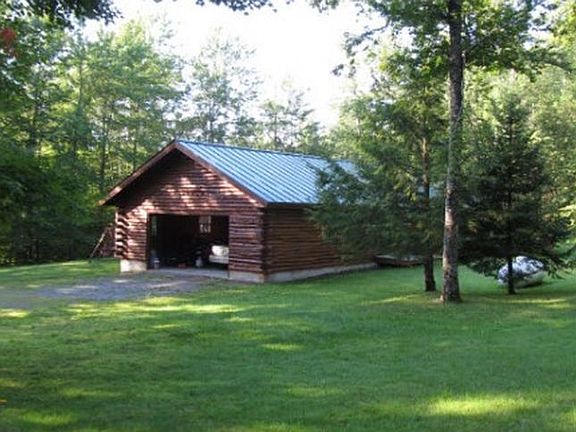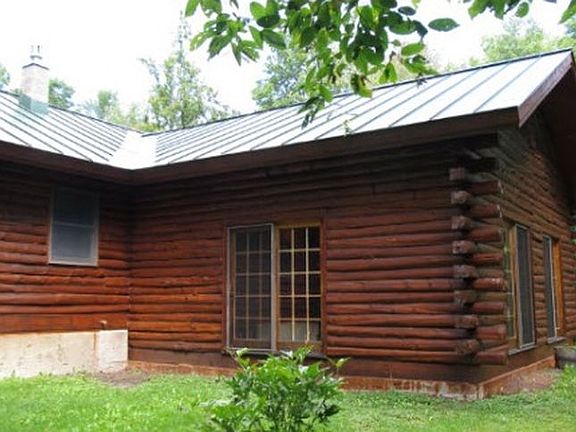 Traditional white cedar log cabin sitting on 1.12 acres. A private wooded lot that is less than 2 minutes to town. Enjoy the cozy radiant floors and pellet stove in the winter and in the summer open all the sliding glass doors in the cathedral living room for a cool breeze. 2 full baths