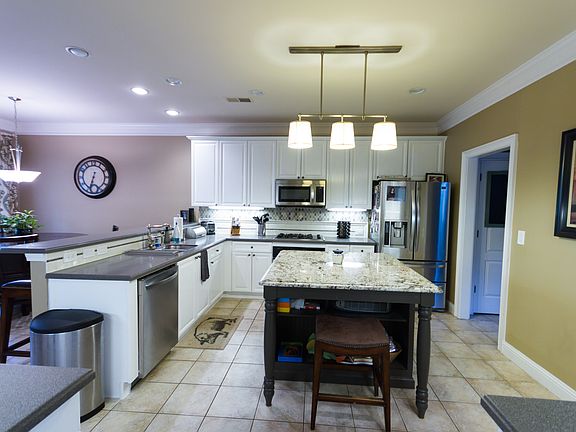- Kitchen Features: Cabinets White, Breakfast Bar, Pantry, Eat-in Kitchen, Solid Surface Counters, View to Family Room, Kitchen Island