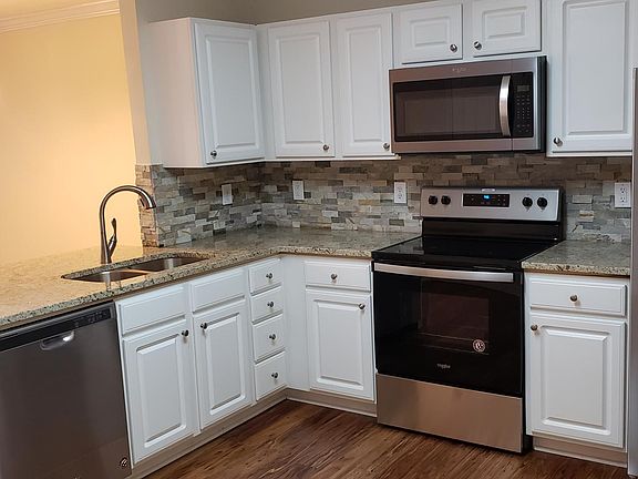 Just remodeled townhouse with new granite countertops and stone backsplash and stainless steel appliances, hardwood floors, stair treads, toilets, tile showers and floors. Has two space assigned parking and rear patio. Unit has washer/dryer hookup Trash service is free, no large pets, 2 car assigned parking in quiet friendly neighborhood