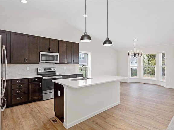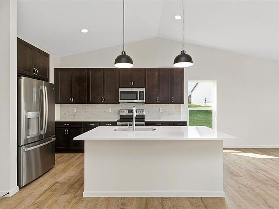 New construction 3BR, 2BA Aspen II ranch home READY NOW! Zero entry garage, front door entrance, and wider doors! Open floorplan! Vaulted ceilings in main living areas and wood laminate flooring in kitchen & dining area. Great room opens to kitchen w/center island & breakfast bar. Level 3 dark 42” kitchen cabinetry, quartz countertops, tile backsplash, stainless steel GE appliances w/refrigerator, & large walk-in pantry. Adjacent dining area bay window & sliding glass door leading to covered cedar deck. Master suite w/dual closets and private master bath w/pocket doors and grab bars. Two add’l bedrooms on main floor, full bath, and laundry room w/wall cabinets and brand new washer & dryer! Decorative windows on garage door! Upgraded lighting, spindled staircase to LL, and more! Westhaven is a beautiful, secluded Wentzville community, includes a playground & common ground onsite, easy access to Hwy 61 & Wentzville Pkwy! McBride Homes’ 10 year builders warranty! Actual Home Photos Shown