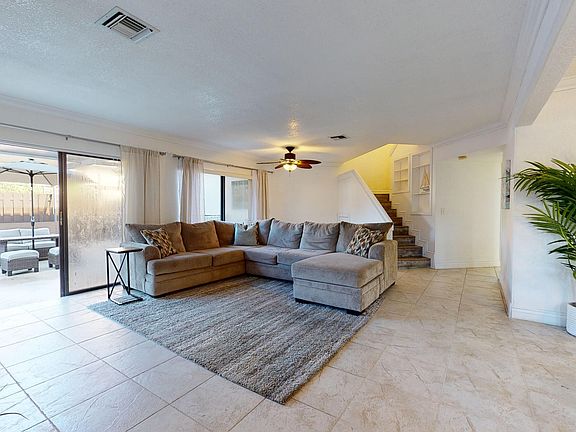 Beautiful Large townhome located in the heart of Royal Palm Beach in a Quiet well maintained community, offering a great open floor plan downstairs that opens out to the fully fenced screened private patio area, updated kitchen, newer appliances, tile flooring and fresh paint, all bedrooms are upstairs with vinyl flooring throughout and tile in the bathrooms, freshly painted throughout, property location is very close to the community pool