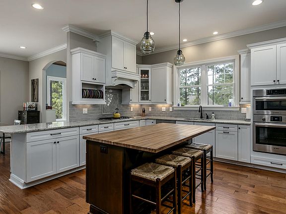 Builder's personal home with Pinehurst 7&9 Membership! This gorgeous 4 bedroom plus bonus room, 3.5 bathroom Kirby custom home, nestled on a quiet cul-de-sac in National, is a must-see! Impeccable detail throughout. Chef's kitchen with upgraded appliances, granite countertops, butcher block island with wine refrigerator, under-cabinet lighting, built-in wine rack and plate rack. Oversized master suite with cast iron tub and walk-in shower with Rainhead. Large laundry room plus additional utility room with sink. Custom built-ins and closets throughout. High ceilings and gorgeous molding detail. Relaxing sunroom with stained beadboard ceiling and oversized windows. Landscaped to perfection with an irrigation system in place. Beautiful DSA solid mahogany entry doors with Flemish glass.