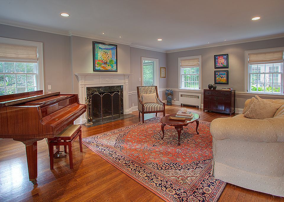Curb appeal reigns supreme for this elegant Northside Georgian Colonial, where lush lawns cascade from its brick and ivy façade just a few blocks from downtown and New York City Mid-town Direct commuter trains. A major renovation and expansion, completed in 2006, enhance the beauty and comfort of the home, encompassing a family room and kitchen, master suite, lower level recreation room, mechanical systems, and so much more. A gracious foyer is flanked by its formal rooms, with hallway views that extend to the home's lovely central courtyard.The inviting living room opens to a delightful den/home office with walls of glass on three sides that offer pastoral property views. The formal dining room is embellished with elaborate millwork and trims, a focal "decorative only" fireplace framed by twin lighted arched curio cabinets, and a swinging door to the butler's pantry and kitchen beyond -- ideal for entertaining guests. Rich custom cabinetry dresses the kitchen, set against sleek granite countertops and a center island anchored on hardwood floors. The breakfast area accesses the courtyard comprised of a herringbone-patterned patio, brick knee walls, exterior lighting and secluded lawns framed by privacy plantings that create the perfect venue for extended al fresco dining and private outdoor relaxation. Walls of custom built-ins extend to a handsome adjacent family room, complete with built-in work station and spiral staircase to the second floor. The piece de resistance is the great room set beneath a cathedral ceiling with soaring beams and track lighting, recessed cove lighting and Atrium window that hover over the dramatic room, with no fewer than five sets of sliders to the property and courtyard, along with a custom built-in media unit. A nearby full bath with oversized shower, plus a mudroom with built-in cubbies and door to an oversized two-car attached garage add convenience. An open second-floor landing introduces spacious bedrooms with double custom-fitted closets. A master sitting room and two generous custom-fitted walk-in closets enhance the gracious master suite, while the luxury master bath has dual marble-topped custom vanities, a jetted tub, oversized corner frameless shower and distinctive tumbled marble tile floors and walls. Two bedrooms are joined by a Jack and Jill bath with shower over tub, while a rear hallway with French doors and Juliet balcony overlooking the courtyard leads to a fourth bedroom with ensuite bath. A second-floor laundry room with built-ins and Bessler pull-down hallway stairs to attic storage complete this level. There is extra leisure living to be enjoyed in lower level recreation room with high ceilings and natural light, finished with neutral wall-to-wall carpeting. Two large storage rooms are located nearby. With virtually every aspect of this home renovated, updated and enhanced, this superlative residence will appeal to the most discerning of homebuyers.