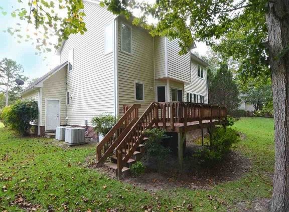 Come check out this beautiful four bedroom home in a great neighborhood! Just minutes away from the bases, shopping, schools and restaurants. This charmer has quiet woods in the backyard that also features nature trails! Over a half acre with mature trees. This home also features gorgeous flooring and counter tops in the kitchen and dining room. You will have plenty of space in this home with over 2100 heated square feet. Also, the elevated deck in the back yard is a great feature and perfect for families or entertaining. Make an appointment to see this home soon. It will go quick!