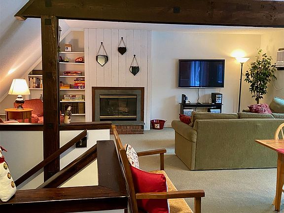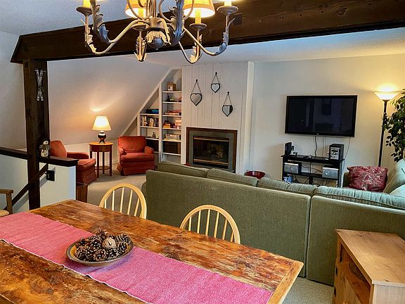 Top of Quechee Mountain, a short walk to the ski slopes. Desirable end unit, fully furnished and a turnkey home. Well laid out open floor plan with LR, DR and Kitchen and a very large private deck (32x22). The kitchen has a nice layout for cooking and includes the washer/dryer. The sliders in the Dining area open to the deck complete with teak dining set for 8 and patio furniture. The spacious living room has a wood burning fireplace. A half bath and utility closet complete the first floor. The lower level has 3 bedrooms and 2 full baths. Large master bedroom with private bath also has new deck. Bunk beds available for 2nd bedroom. The building exterior has been completely renovated with new siding, decks, doors and looks great! Come ski Quechee, and everything else it has to offer!!