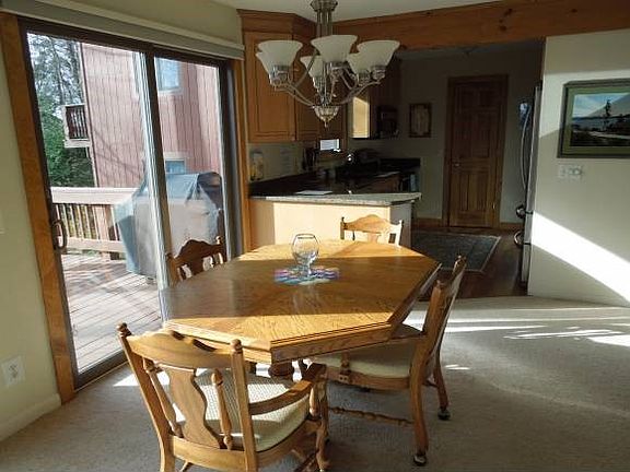 Ski in - Ski out from this renovated condo located on the ski hill. 3 bedrms, 2 1/2 baths; new kitchen with granite, stainless appliances, hard wood floor, all new doors and windows in unit. New carpeting and window treatments. Updated baths. Impeccably maintained. Perfect vacation home. A/C on main floor.