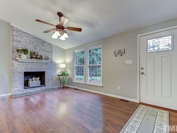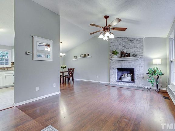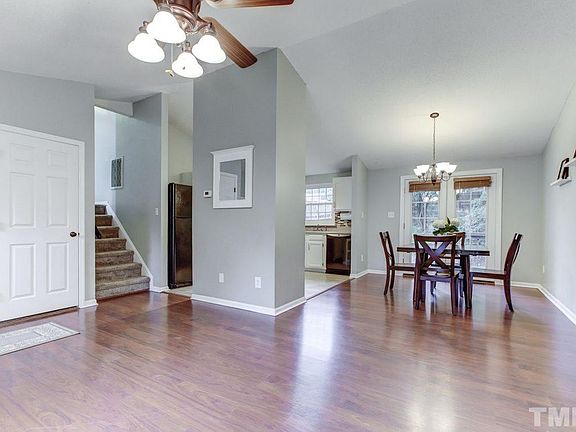 Lovely Home in Willoughby Place! Cathedral Ceiling & Laminate Wood-Looking Floors! Roof (2014) Heat Pump (2007). Family Room offers a Brick Fireplace. Kitchen has Lots of Cabinets and a Decorative Tile Backsplash. Master includes a Large Closet, Ceiling Fan with Light, Updated Vanity and Tiled Shower. Lower Level Bonus with Built-in Shelves, Laundry, and Unfinished Storage. New Garage Door, Spacious Deck, Fenced Backyard, and a Storage Shed. Close to downtown Cary, Raleigh, Parks, and Major Roads! No HOA!