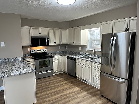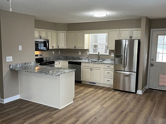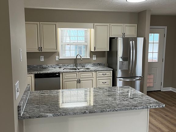 Completely redone in 2025, two-bedroom one bath house. Upgraded spacious kitchen with new cabinets, appliances and granite, new bathroom, new seamless floors throughout, new 2'' blinds, new HVAC and water heater. Washer and dryer hook ups are in a laundry closet in the bathroom. There is a large garage that fits at least 3 vehicles, a secondary shed in the back and even a secluded firepit. This is a quiet neighborhood with easy access to main roads, shopping, and only 23 minutes to Fort Knox. 2+ acres, lots of mature trees, fenced in backyard, firepit, shed and a garage. Dogs ok upon approval with a pet fee, sorry no cats allowed. Tennant is responsible for all utilities, electric, water, trash, cable/internet. Tennant is responsible for yard maintenance in backyard and around house, remaining 2.8 acres is optional with a fee. Tennant may have dogs with approval and deposit/fees, sorry no cats. Tennant has full use of garage and storage shed. One year lease with quarterly scheduled home inspections.