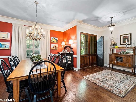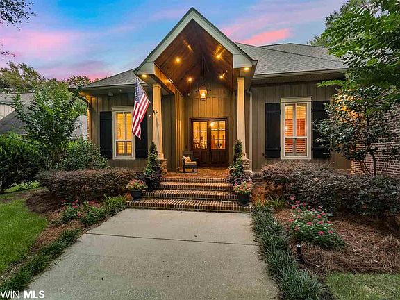 Located in the prestigious Woodlands at Fairhope, this immaculate custom one-owner home sits on 1+ acre and is an entertainer's dream! Almost all of one level, this property is 3800 sq ft and offers 5 bedrooms, 4 bathrooms, bonus room, and a covered patio that can be screened or completely enclosed (via electric vinyl screen) for extra living space with wood-burning fireplace with gas starter. Open floor plan. Tall ceilings. Engineered wood floors throughout living areas. Split bedroom plan. The kitchen is the heart of this home with an oversized granite bar accommodating space for 9 barstools as well as an island with space for 3 more barstools. Stainless steel appliances to include an electric cooktop (gas hookup as well), wall oven, GE Advantium microwave, ice-maker, disposal, black ground granite sink, loads of cabinets with spice rack pull-out, lazy Susans and more, and huge walk-in pantry! Master Suite offers a large walk-in closet with built-ins, double vanity, jacuzzi tub, shower, sep. toilet area. Bedrooms 2 and 3 share a bathroom. Separate bedroom suite on opposite side of house. Upstairs features a bonus room with a theater system as well as a bedroom/bathroom. Plumbed upstairs for kitchenette. Tons of storage inside as well as in attic! Plantation shutters on front of house. Surround sound. Attached 4 car garage (2 tandem spots) with utility sink inside garage. Detached double garage currently a workshop. Greenhouse behind garage. Outdoor kitchen area with sink, cabinets, & gas line. Beautifully landscaped! Courtyard off patio with iron fencing and decorative gate includes large fountain & 4-hole putting green. Storm ready: generator ready, plug-in ready for Master Bdrm window A/C unit, working shutters. 2 HVACs w/clean air filter system. 2 Tankless gas water heaters. 4 water hydrants stubbed in yard. 2 water meters--separate one for yard. Entire house replumbed in 2017. Alarm system with cameras. Built by Robert Nall, Bayside Builders.