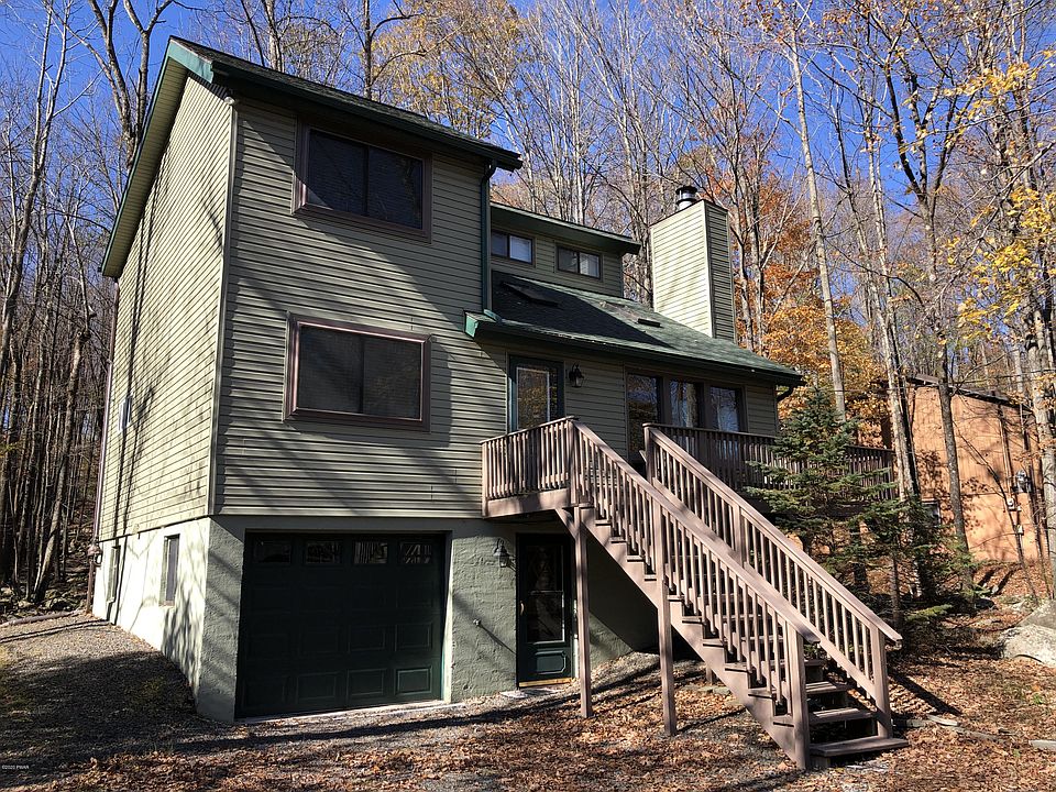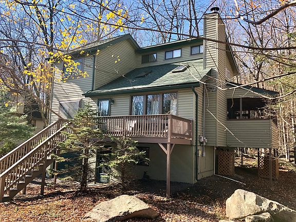 Picture perfect 3 bed 2 bath single family home with 2nd family room, screened in porch, large rear deck w/swing, large master walk-in closet, master balcony and garage! Tucked away on the south end of The Hideout, one of NEPA's premier 4 season communities. Main floor has open floor plan with access to both screened in porch and back deck. Living room has brick faced fireplace with propane insert. Main floor bathroom gives access from both the living room and main floor bedroom. 2nd floor has large bedroom with lots of natural light and master bed/master bath/ walk in closet with access to upper deck. Lower level family room has private entrance with access to garage and stacked washer/dryer. stone-rolling backyard gives incredible amount of privacy! Schedule a showing with your realtor!, Beds Description: 2+BED 2nd, Beds Description: 1Bed1st, Baths: 1 Bath Level 1, Baths: 1 Bath Level 2, Eating Area: Dining Area, Sewer: WS Comm Central