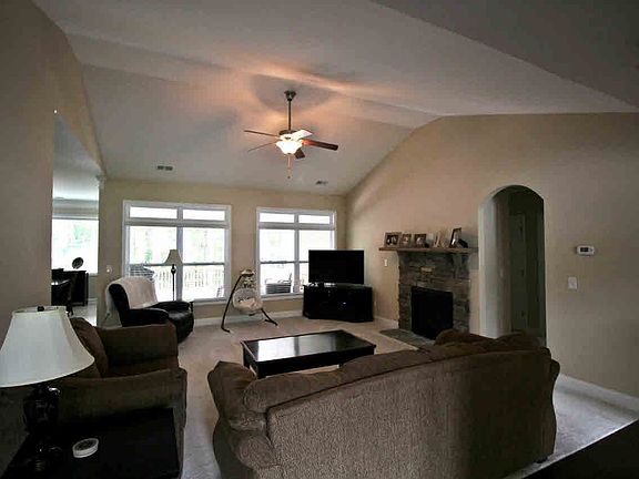 This beautiful 3 bed 2 bath ranch style home in Eagle's Nest subdivision is a must see. At just over 1 year old this home boasts hardwood floors and like new carpets. Details such as the stone fireplace in the living room, crown molding, picture frame molding, high box ceilings as well as vaulted ceilings add to the elegance of this home's interior. The sleek kitchen features granite counter tops, dark wood cabinets, and all stainless steel appliances along side of a generous eat in kitchen area. The large master suite on the main level includes box ceilings, separate shower, large garden tub and double vanity. Step out of the great room onto the wonderful covered porch to enjoy the private back yard that backs up to a creek.