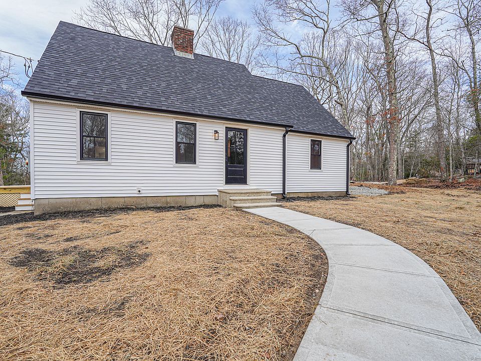 Welcome to Voluntown! This 4 bedroom/3.5 bathroom Classic New England Cape is absolutely stunning and offers over 2700 square feet of living space. This home has as impressive open floor plan that is both functional and appealing...at its core there is a beautiful custom kitchen with unique quartz countertops and a massive island that is well over 14 feet long. Balancing out the kitchen is a dining area and living room as well as a delightful space with a vaulted ceiling, skylights and tall windows that flood the first floor with sunlight. Other features include a large walk-in pantry with french doors and custom shelving, main level laundry room with butcher block countertop and a convienent mudroom with bench seating and storage. You will also find a first floor Primary Suite with its own bathroom and walk-in-closet. On the upper level there are 3 more bedrooms and 2 full bathrooms as well as flex space that could be used as a home office, playroom/media room or an opportunity to incorporate into another Primary Suite. This property has been significantly updated both inside and out with new vinyl siding, black farmhouse style windows, black gutters, new roof, new deck, professional landscaping, new walkways and lighting. Brand new ductless split units for heating and cooling, and updated plumbing/electrical. All bathrooms have been updated, energy efficient lighting added and luxury vinyl plank flooring throughout the entire home. Great location with easy access to major routes and commutes to Providence and Boston as well as RI/CT beaches and casinos. UPDATED Pictures will be added soon!!